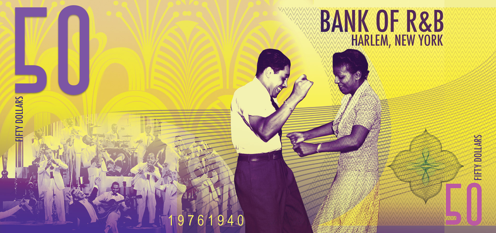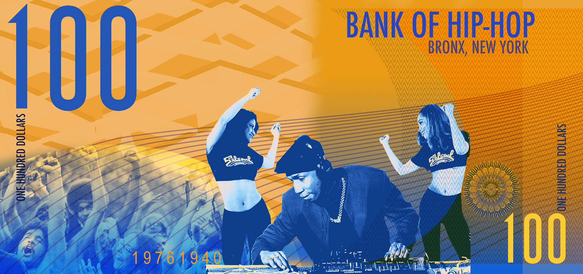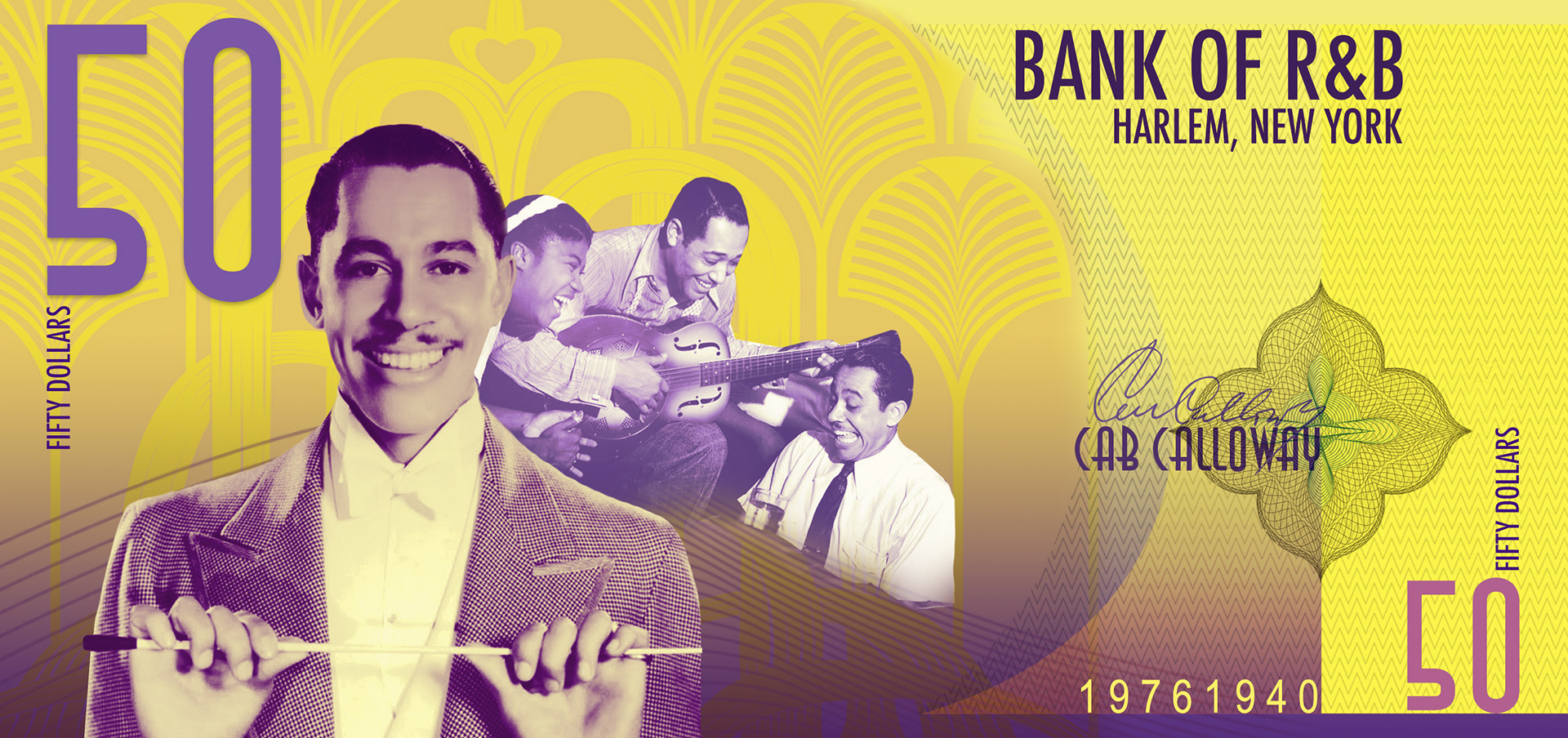 A design project of two denominations of bills reflecting two genres and their iconic figures: Cab Calloway and Grandmaster Flash & The Furious Five.